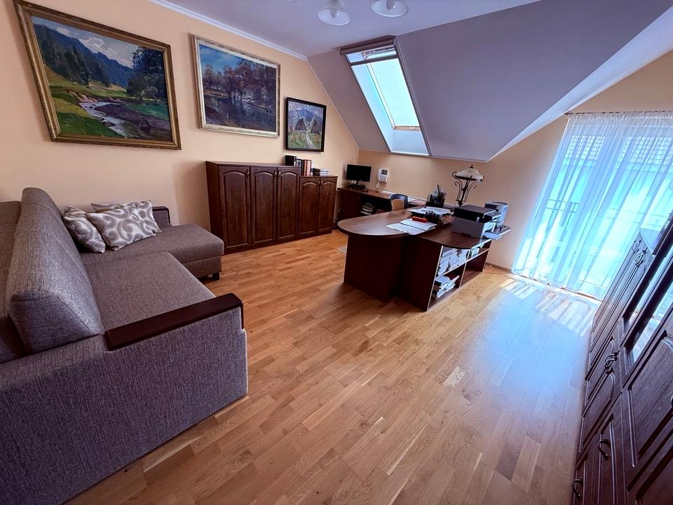 Продається дуже затишний будинок, з великою ділянкою, 12 соток. Може бути для великої сім’ї або для двох сімей. Будинок утеплений, дах черепиця. На першому поверсі кухня-їдальня з виходом на терасу, хол з каміном, велика кімната, душова, санвузол, гардероб, комора.