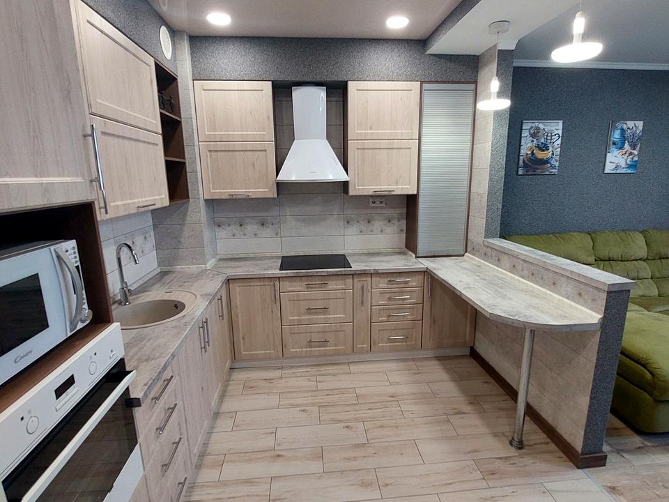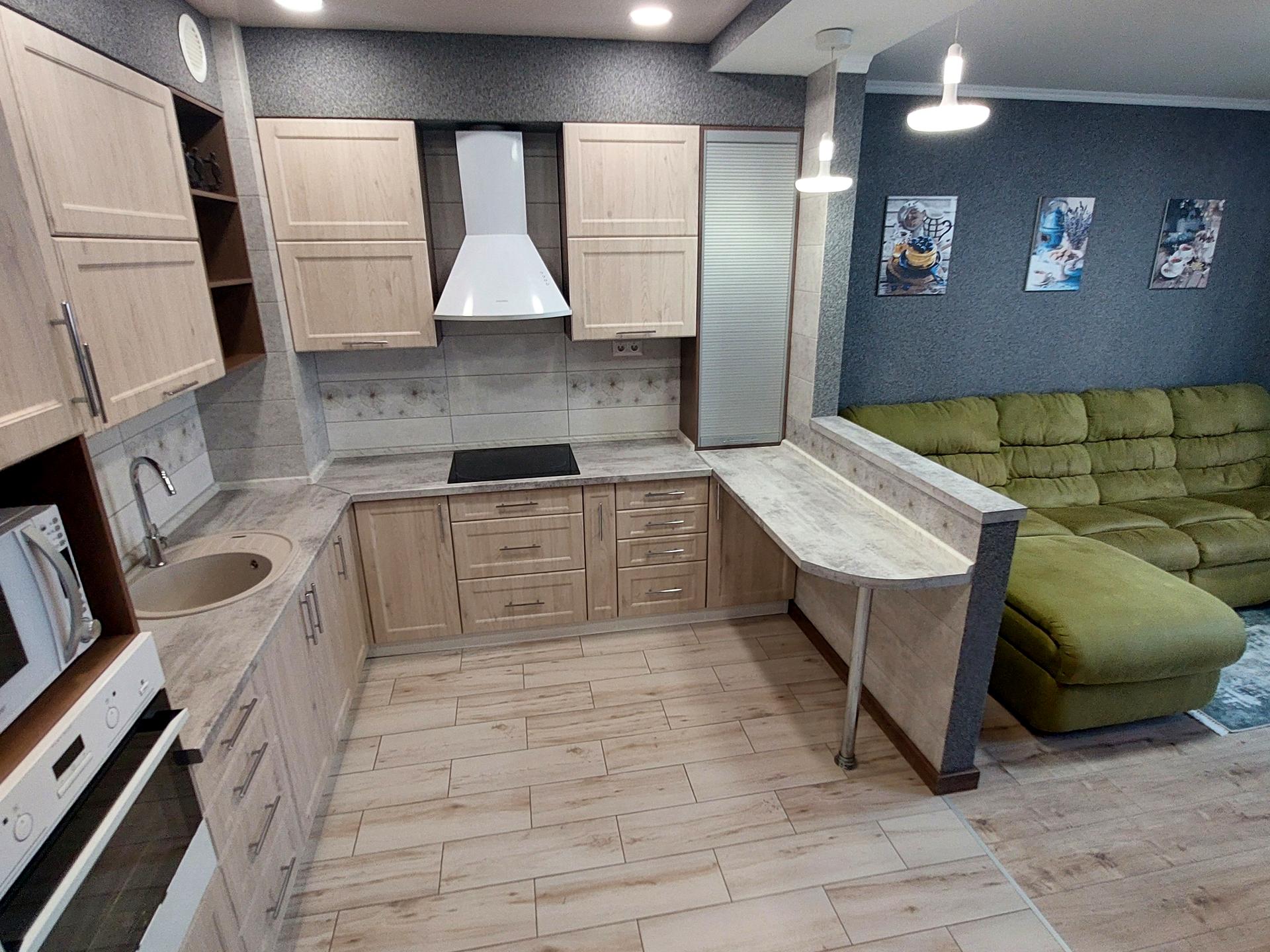 Встановлено вбудовані меблі на кухні, меблі у кімнатах з натурального дерева, що вироблялися під замовлення.
