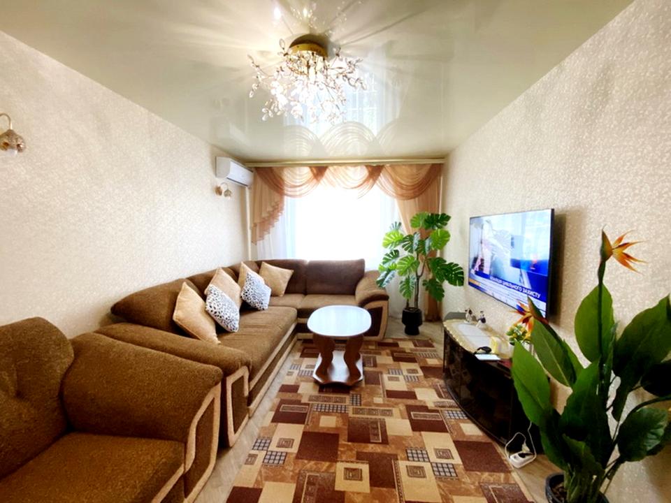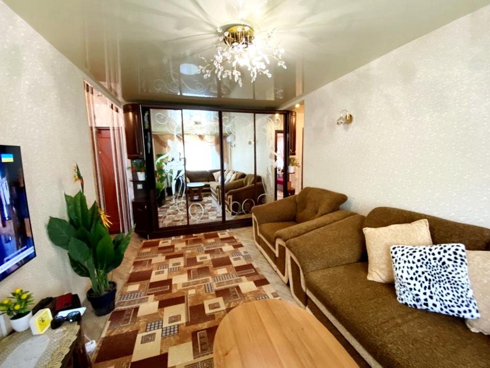 Квартира двостороння, з ремонтом, світла, не кутова, одна кімната прохідна та дві окремі, є балкон і лоджія, на вікнах решітки, цоколь високий, є кондиціонер, посудомийна машина, бойлер, санвузол сумісний (встановлена нова душова кабіна, але є в наявності ванна, за потреби можна встановити), продається майже з усіма меблями та технікою.