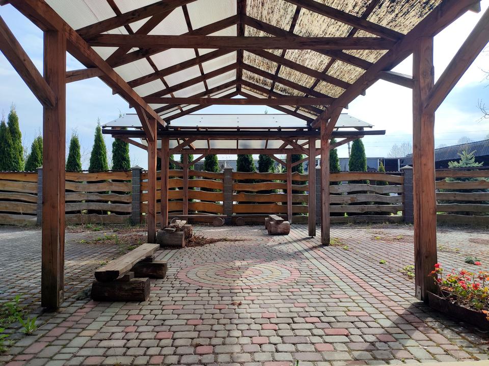 Затишний внутрішній дворик з навісом.