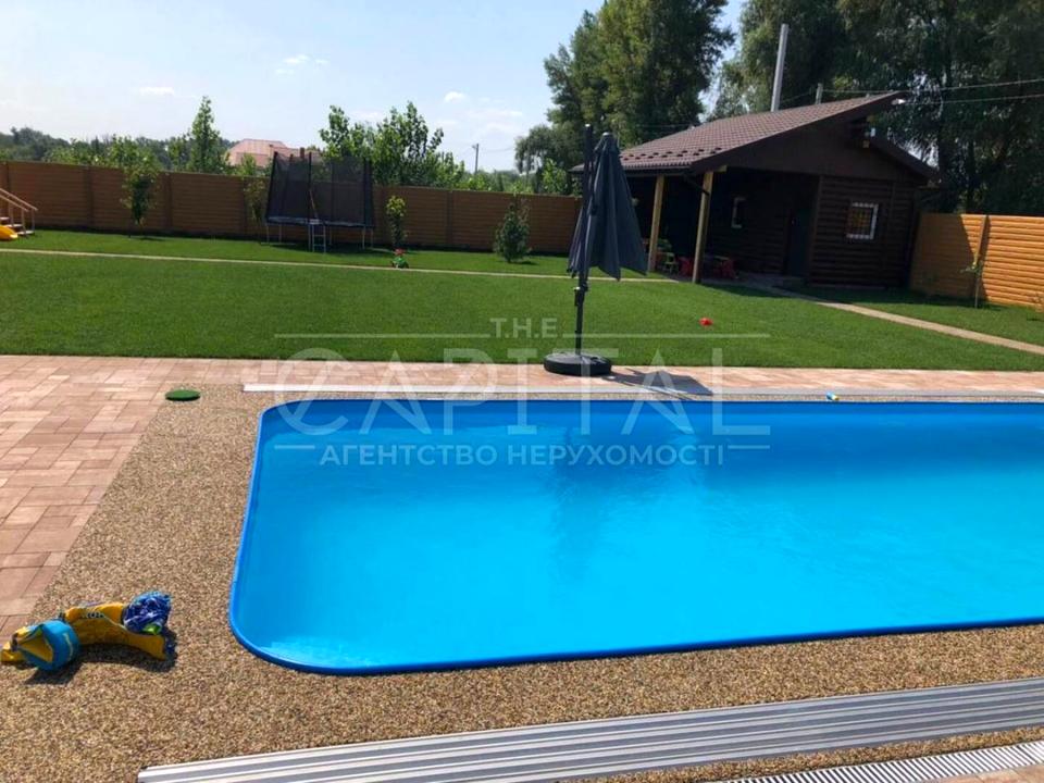 Будинок, 2 поверхи, 5 кімнат. Під'їзд до будинку - асфальт. Площа ділянки 12 соток. Тип кухні - кухня-студія. У будинку є Телевізор, Супутникове ТБ, Праска, Підігрів підлоги, Кондиціонер, Пральна машина, Сушильна машина, Душова кабіна, Ванна, Холодильник, Мікрохвильовка, Посудомийна машина, Посуд, Сигналізація, Автополив, Газон, Сад/город, Зона мангалу, Гараж, Тераса, Бесідка, Лазня, Басейн. Своя каналізація. Загальний стан будинку - З ремонтом. Кількість санвузлів: 2. Інтернет оптоволоконний. Працює без світла - вода, опалення, інтернет, резервне живлення (акумулятори/генератор). Кількість спален: 3. Комісія за послуги 50 %