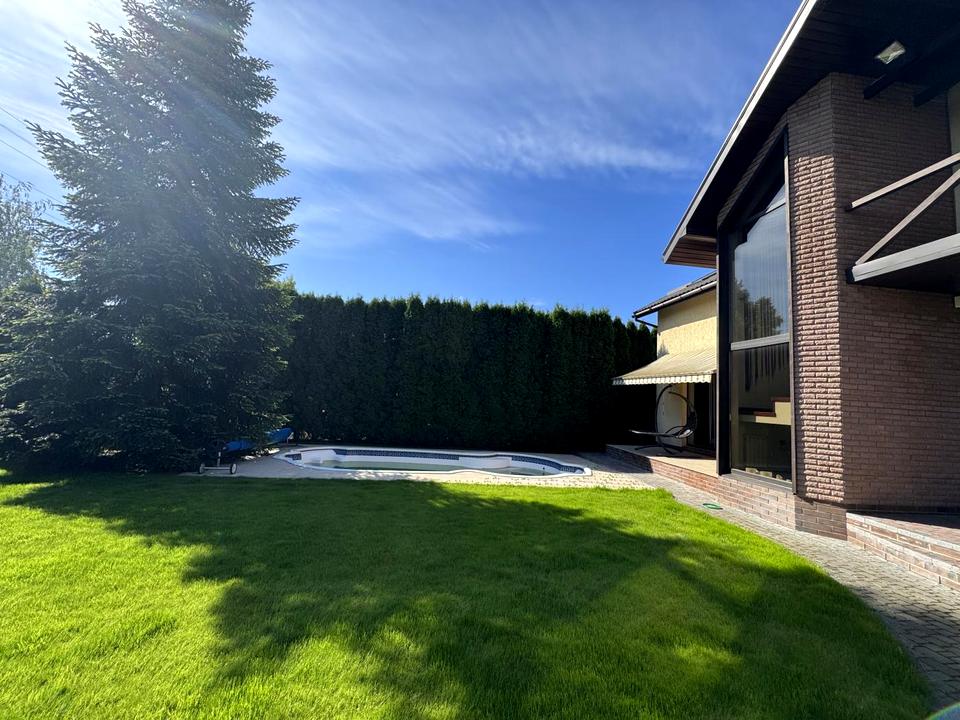 Будинок, 2 поверхи, 6 кімнат. Площа ділянки 10 соток. Планування кімнат Суміжно-роздільне. У будинку є Ванна, Зона мангалу, Гараж, Тераса, Басейн. Будинок побудований в 2015 році. Загальний стан будинку - З ремонтом. Працює без світла - вода, опалення, інтернет, резервне живлення (акумулятори/генератор). Комісія за послуги 50 %
