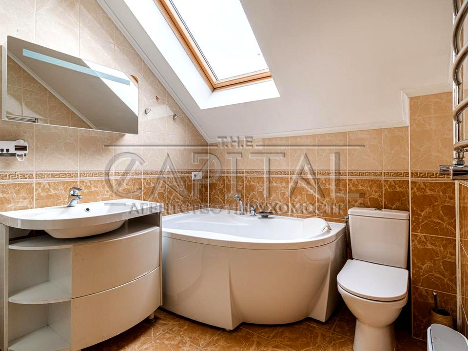 Будинок, 2 поверхи, 6 кімнат. Під'їзд до будинку - асфальт. Площа ділянки 5 соток. Планування кімнат Роздільне. У будинку є Кондиціонер, Ванна, Сигналізація, Сад/город, Лазня. Своя каналізація. Загальний стан будинку - З ремонтом. Працює без світла - вода, опалення, інтернет. Комісія за послуги 5 %