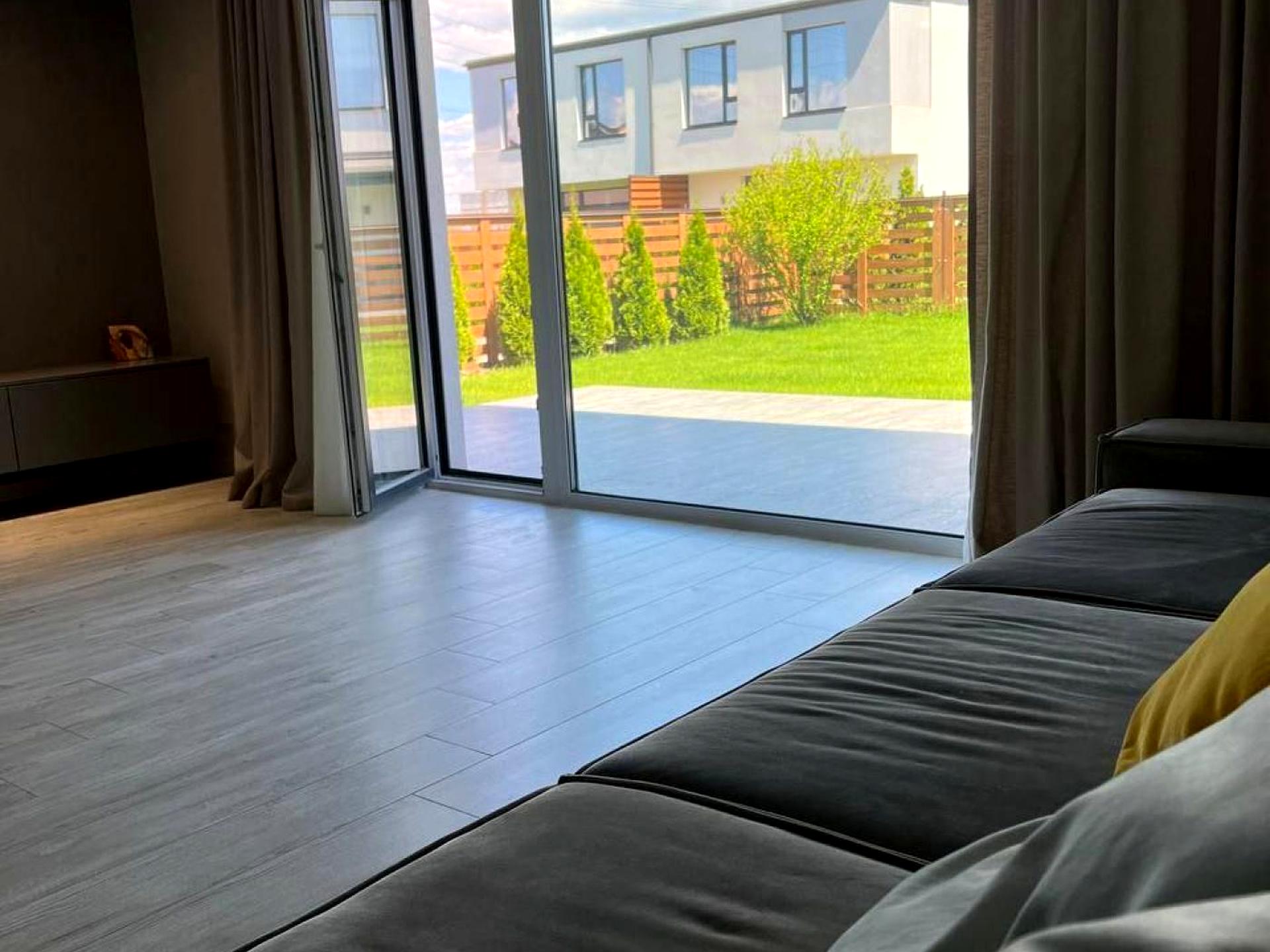Таунхаус, 2 поверхи, 3 кімнати. Під'їзд до будинку - асфальт. Площа ділянки 1 сотка. Висота стелі 3 метра. Покриття підлоги: покриття підлоги - плитка. В будинку 1 балкон. Тип кухні - кухня-студія. Немає підвалу. У будинку є Телевізор, Підігрів підлоги, Кондиціонер, Пральна машина, Холодильник, Мікрохвильовка, Посудомийна машина. Своя каналізація. Загальний стан будинку - З ремонтом. Холодна вода - водопровід. Гаряча вода - електричний бойлер. Опалення котел газовий. Кількість санвузлів: 2. Тип автономної електроенергії: акумулятори / джерела безперебійного живлення, генератор. Інтернет бездротовий. Працює без світла - вода, газ, опалення, інтернет, резервне живлення (акумулятори/генератор). Кількість паркомісць: 2. Кухонна плита електрична. Кількість спален: 2. Комісія за послуги 50 %