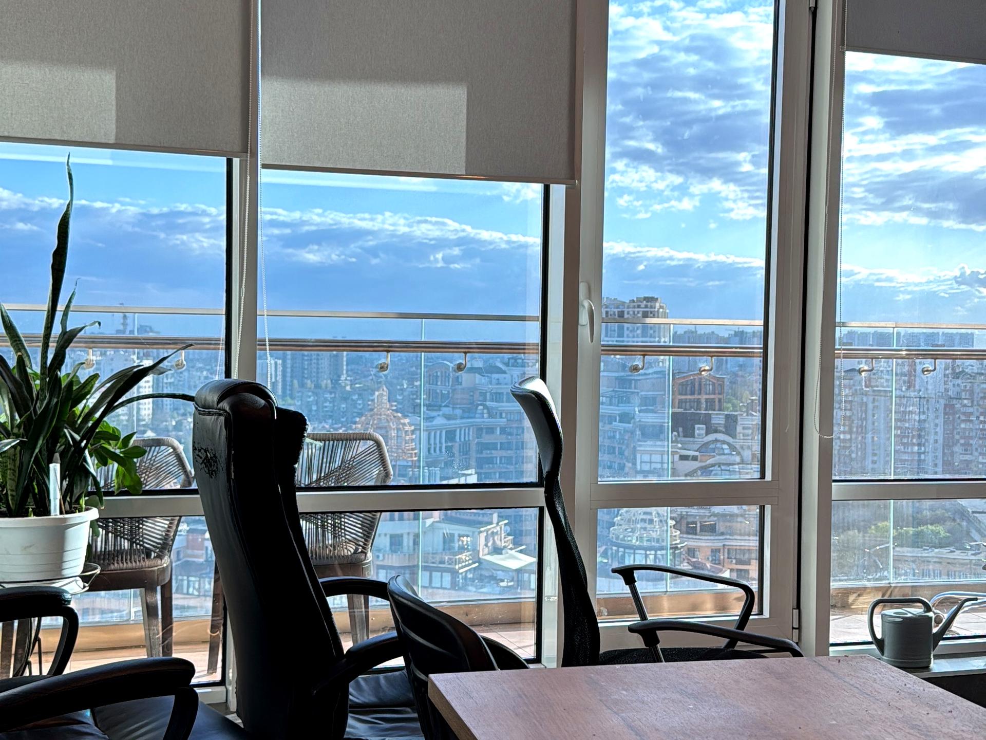 Сдаётся офис современным ремонтом, удобным расположением кабинетов, есть два балкона с которых открывается вид на улицу Генуэзская, и также на противоположную сторону, оплата за первый и последний месяц,а также коммунальные, есть екофлоу.