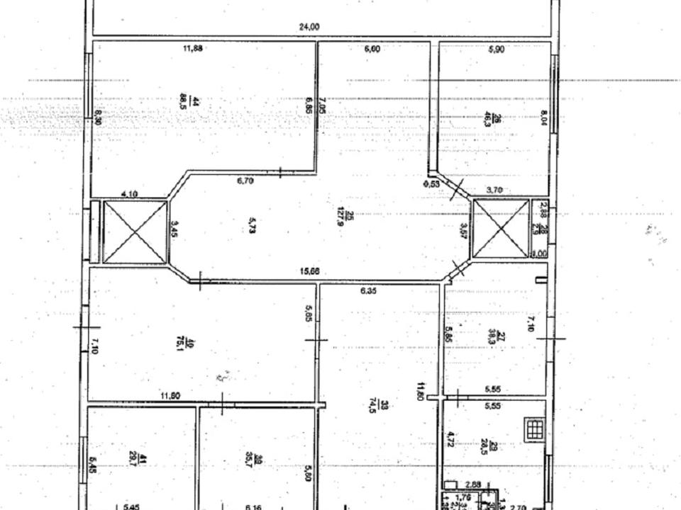 S 1,2,3 поверхи – 500кв.м.; 4 поверх - 1320 кв.м.; підвал 390 кв.м.