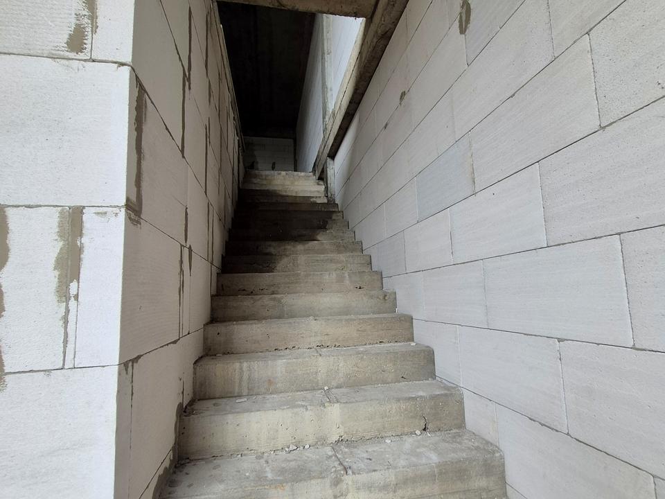 Вхід з фасаду сходами на другий поверх.