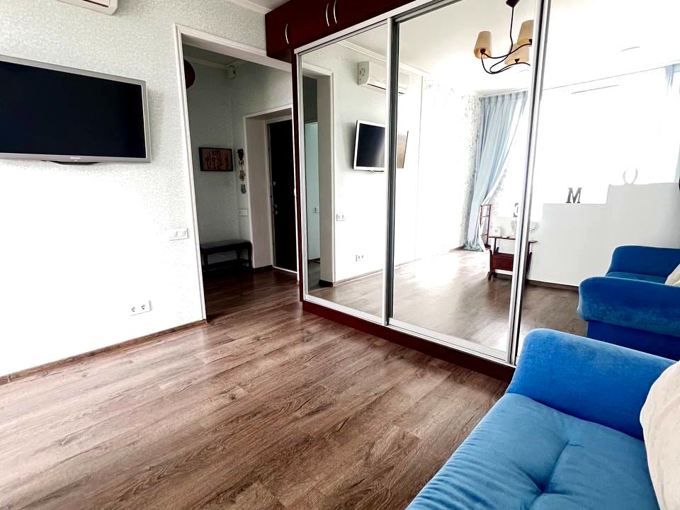 В квартирі 1 кімната, Технологія будівництва - Монолітно-каркасна. Вид з вікон на місто. Квартира стандартна, планування кімнат Роздільне. Немає газу, кухонна плита електрична. Гаряча вода - електричний бойлер. Опалення автономне. Суміщений санвузол, Туалет/душ. Є сантехніка. Немає підігріву підлоги. Є балкон. Вікна металопластикові. В квартирі є Телевізор, Шафа, Холодильник, Ліжко, Пральна машина, Кондиціонер, Лічильники, Душова кабіна. Загальний стан квартири - З ремонтом. Охорона, Консьєрж, Комора. Поруч є зупинки, розважальні заклади, супермаркет. Торг доречний. Інтернет оптоволоконний. Працює без світла - вода, опалення, ліфт. Комісія за послуги 50 %