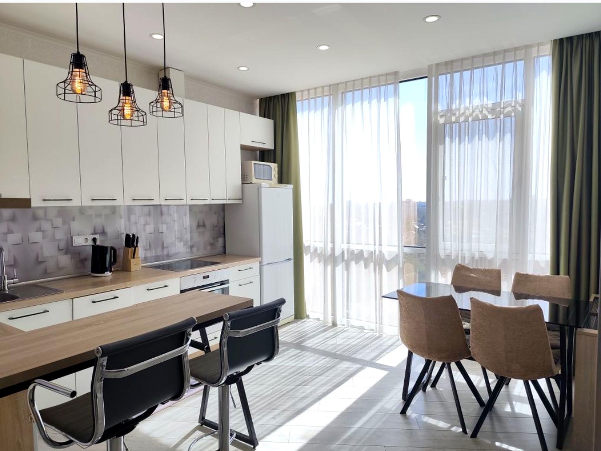 Дорогой качественный ремонт. Квартира светлая, с панорамным остеклением. На кухне мощный кондиционер. В отдельной спальне прочная кровать из натурального дерева.