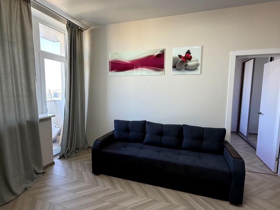 В квартирі 2 кімнати, висота стелі 3 метра, Технологія будівництва - Монолітно-каркасна, Тип будинку - Спец. проект. Кухонна плита електрична. Є балкон. У квартирі є Телевізор, Праска, Кондиціонер, Пральна машина, Душова кабіна, Посудомийна машина, Посуд. Будинок побудований в 2015 році. Загальний стан квартири - З ремонтом. Кількість санвузлів: 1. Інтернет оптоволоконний. Працює без світла - вода, опалення, інтернет, ліфт. Тип кухні - кухня-студія. Кількість спален: 1. Комісія за послуги 50 %