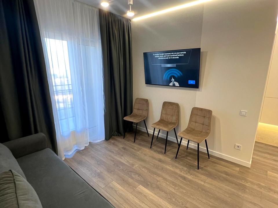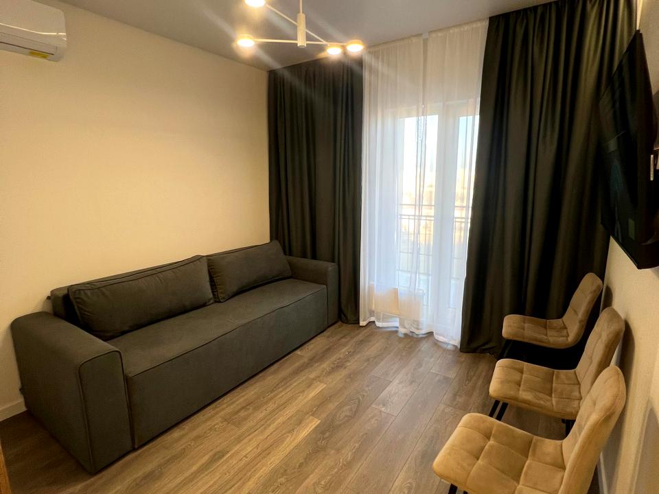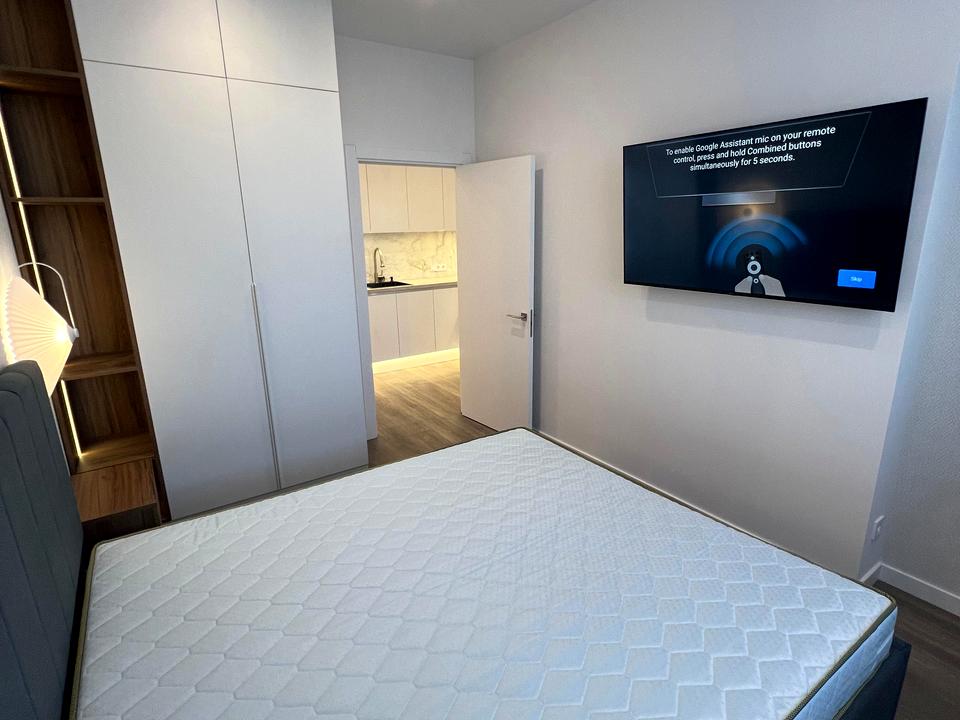 В квартирі 1 кімната, висота стелі 3 метра, Технологія будівництва - Монолітно-каркасна, Тип будинку - Спец. проект. Немає газу, кухонна плита електрична. Є балкон. У квартирі є Телевізор, Кондиціонер, Пральна машина, Душова кабіна, Холодильник, Посудомийна машина. Будинок побудований в 2024 році. Загальний стан квартири - З ремонтом. Безбар'єрність: вхід у будинок на рівні землі. Гаряча вода - централізована. Кількість санвузлів: 1. Інтернет оптоволоконний. Працює без світла - вода, опалення, інтернет, ліфт. Тип кухні - кухня-студія. Кількість спален: 1. Комісія за послуги 50 $