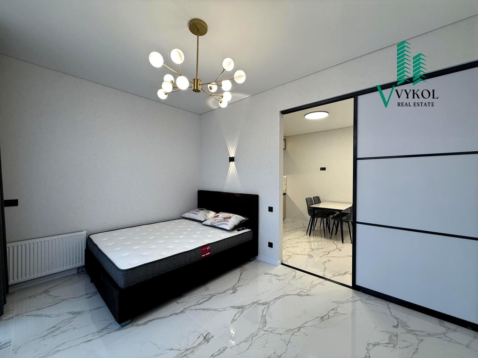 В квартирі 1 кімната, висота стелі 3 метра, Тип будинку - Спец. проект. Немає газу, кухонна плита електрична. Є балкон. У квартирі є Телевізор, Кондиціонер, Пральна машина, Душова кабіна, Холодильник, Сигналізація. Будинок побудований в 2025 році. Загальний стан квартири - З ремонтом. Гаряча вода - централізована. Кількість санвузлів: 1. Інтернет оптоволоконний. Працює без світла - вода, опалення, ліфт. Тип кухні - кухня-студія. Кількість спален: 1. Комісія за послуги 50 %