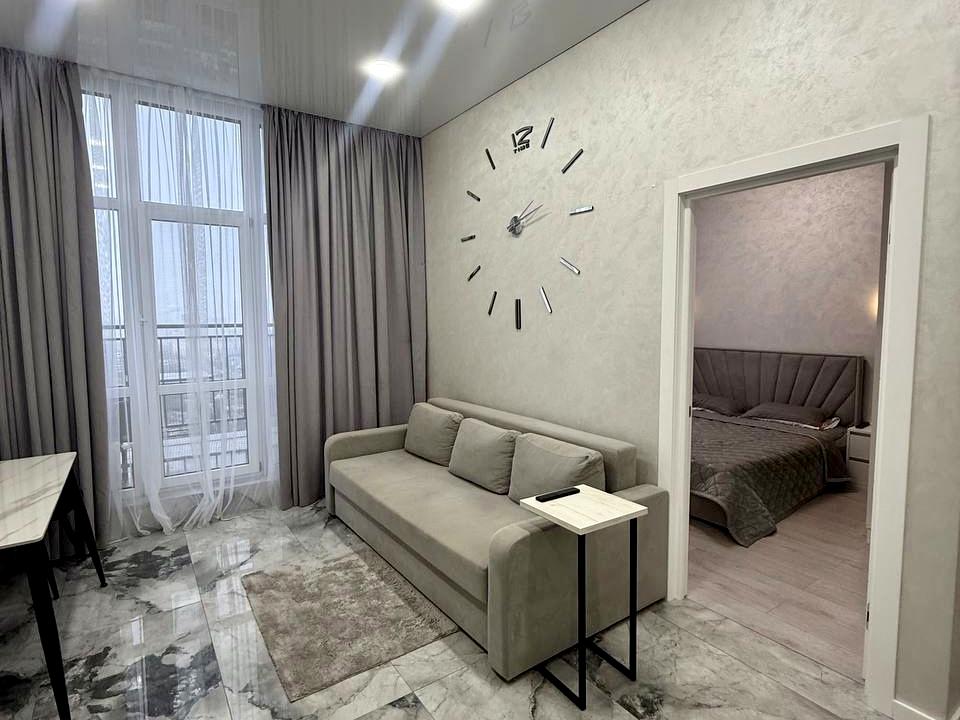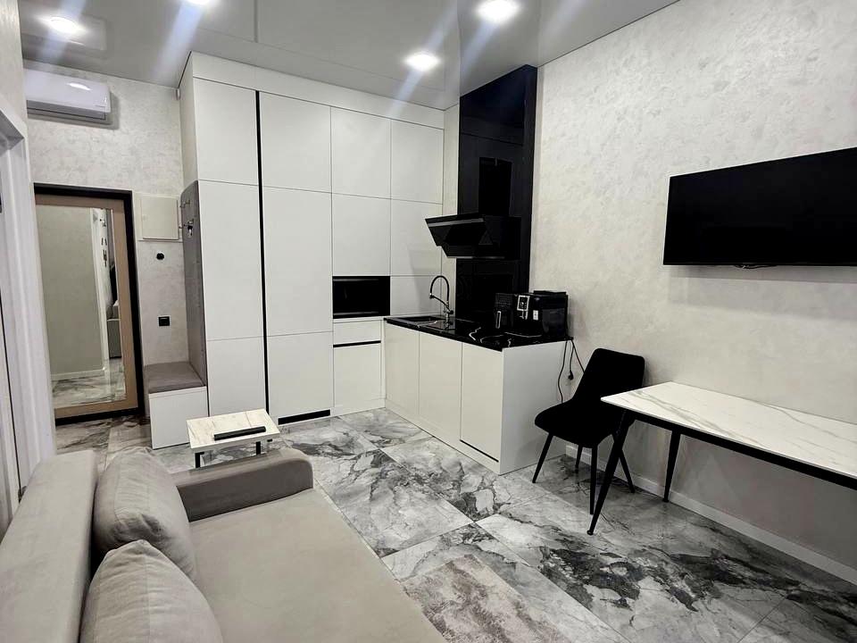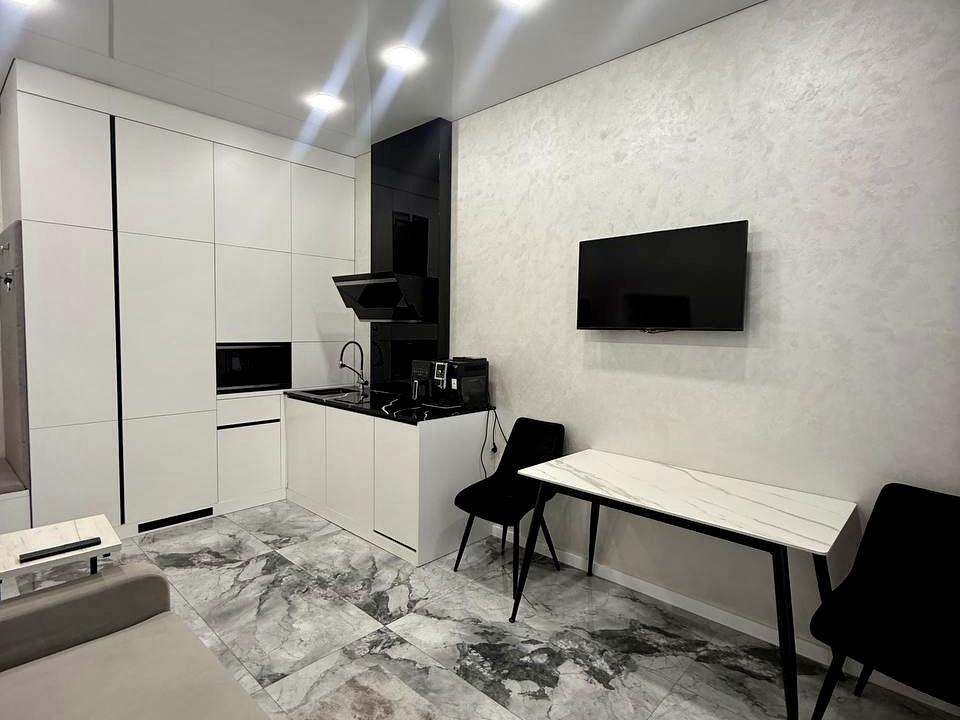 В квартирі 1 кімната, Технологія будівництва - Монолітно-каркасна, Тип будинку - Спец. проект. Є балкон. У квартирі є Телевізор, Кабельне ТБ, Підігрів підлоги, Кондиціонер, Пральна машина, Душова кабіна, Холодильник, Мікрохвильовка, Посудомийна машина. Будинок побудований в 2021 році. Загальний стан квартири - З ремонтом. Кількість санвузлів: 1. Працює без світла - вода, опалення, ліфт. Тип кухні - кухня-студія. Кількість спален: 1. Комісія за послуги 50 %