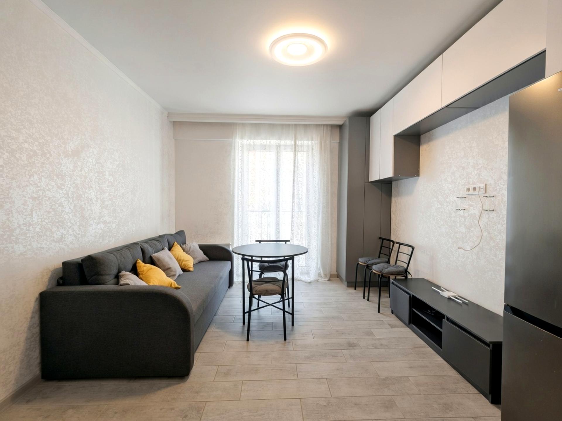 Квартира полностью укомплектована мебелью и бытовой техникой для комфортного проживания.