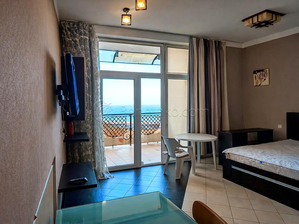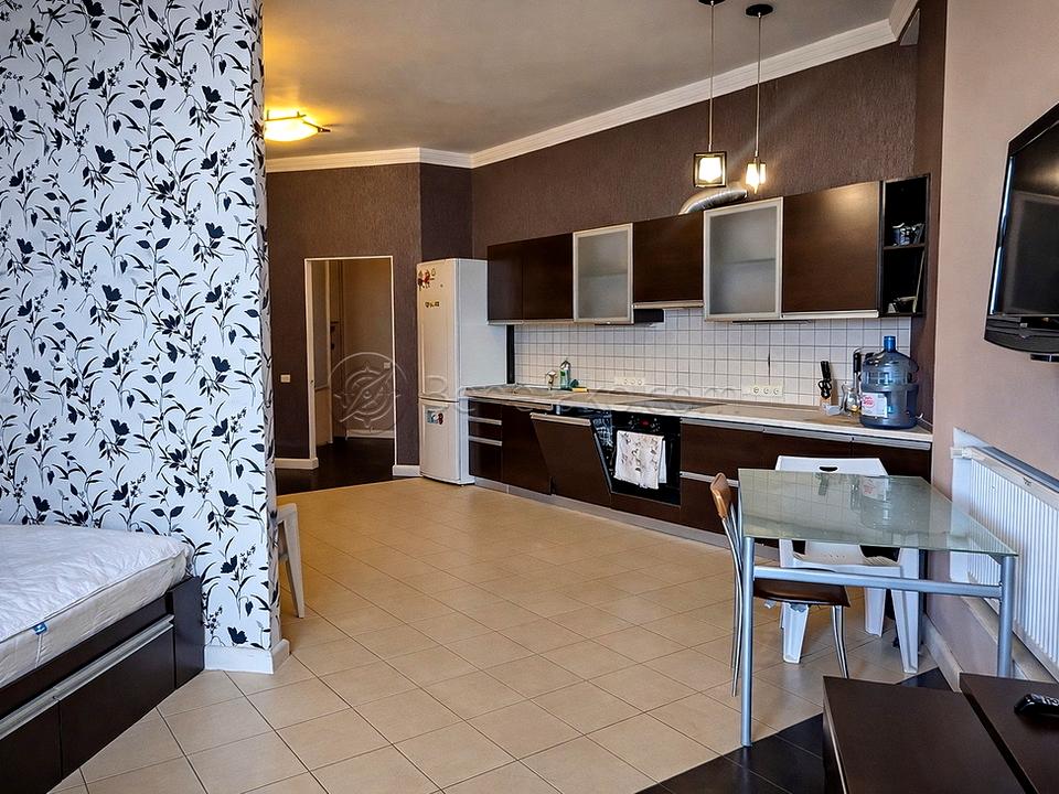 Код: 466. ДОЛГОСРОЧНАЯ АРЕНДА (цена в летний сезон 22000грн.).Квартира-студия с террасой и шикарным видом на море в Ж/К «Аркадийский дворец», ул. Аркадийское плато, 5/3, 6/12 эт. дома, общая площадь 56 кв. м. (с учетом террасы). Евроремонт 2012 года, вся необходимая мебель и бытовая техника. В санузле - ванна. Окна выходят во двор на армянскую церковь. Закрытая, охраняемая территория, бесплатная парковка во дворе (при наличии мест), подземный паркинг (за дополнительную оплату), дом находится прямо над пляжем «Аркадия» в 150-ти метрах от моря. Самый популярный курортный район и центр развлечений Одессы с множеством кафе, ресторанов, ночных клубов и аттракционов. Аренда от 6-ти месяцев и более. Стоимость может варьироваться в зависимости от срока аренды. Перед просмотром уточните наличие и важные для вас детали по VIBER, WHATSAPP или TELEGRAM, указав «КОД» из объявления. КОМИССИЯ ЗА УСЛУГИ РИЭЛТОРА - 50% от месячной аренды (разовая оплата при оформлении договора).
