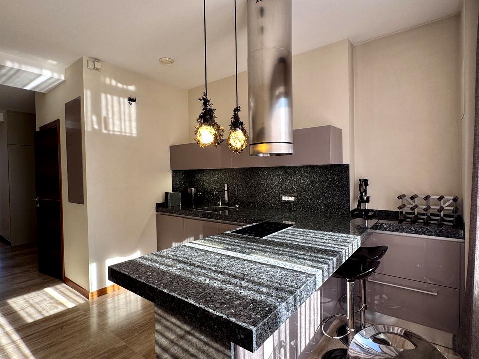 Окрема квартира, в квартирі 3 кімнати. Вид з вікон на море, на місто. Планування кімнат Суміжно-роздільна. Є газ, кухонна плита електрична. Опалення автономне. Є сантехніка. Є балкон. В квартирі є Телевізор, Кабельне ТБ, Шафа, Холодильник, Ліжко, Пральна машина, Мікрохвильовка, Кондиціонер, Лічильники, Сейф, Душова кабіна, Посудомийна машина. Загальний стан квартири - Дизайнерський ремонт. Поруч є море, школа, дитсадок, зупинки, розважальні заклади, супермаркет, парк. Працює без світла - вода, газ, опалення, інтернет. Без комісії