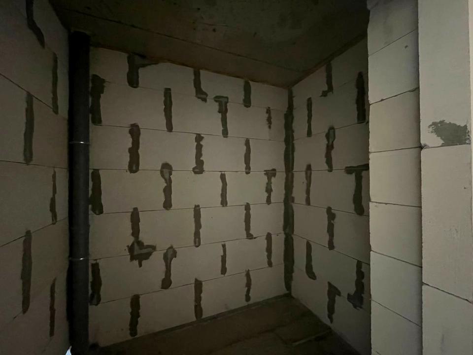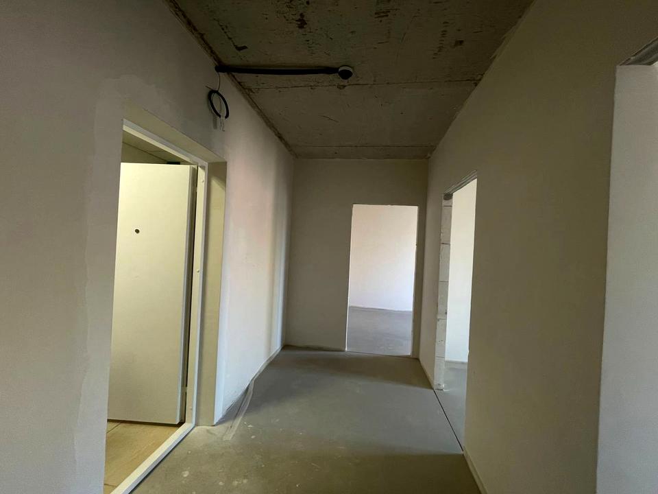 В квартиі виконана стяжка підлоги, чорнова штукатурка, встановлені радіатори та броньовані двері.
