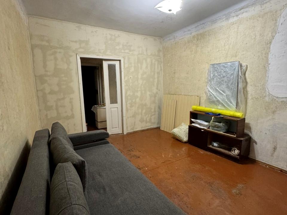 Квартира потребує ремонту, стіни підготували під поклейку шпалер або фарбування.