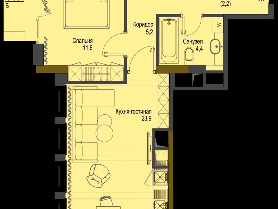 Общая площадь 52,6 кв.м.