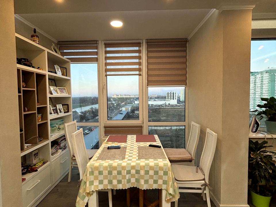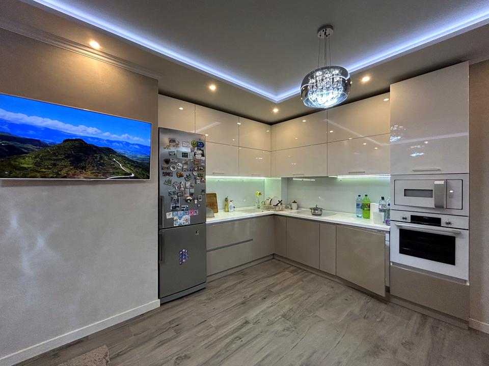 У квартиры очень хорошая планировка, кухня-гостиная, две отдельные спальни, гардеробная, балкон.
