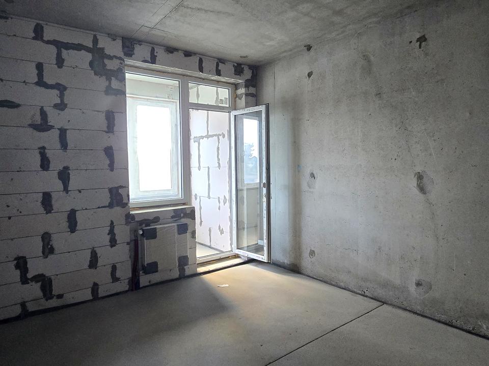 Большая кухня-гостиная, которую можно перепланировать в кухню и отдельную комнату, а так же спальня площадью 13.4 м с выходом на застекленную лоджию.