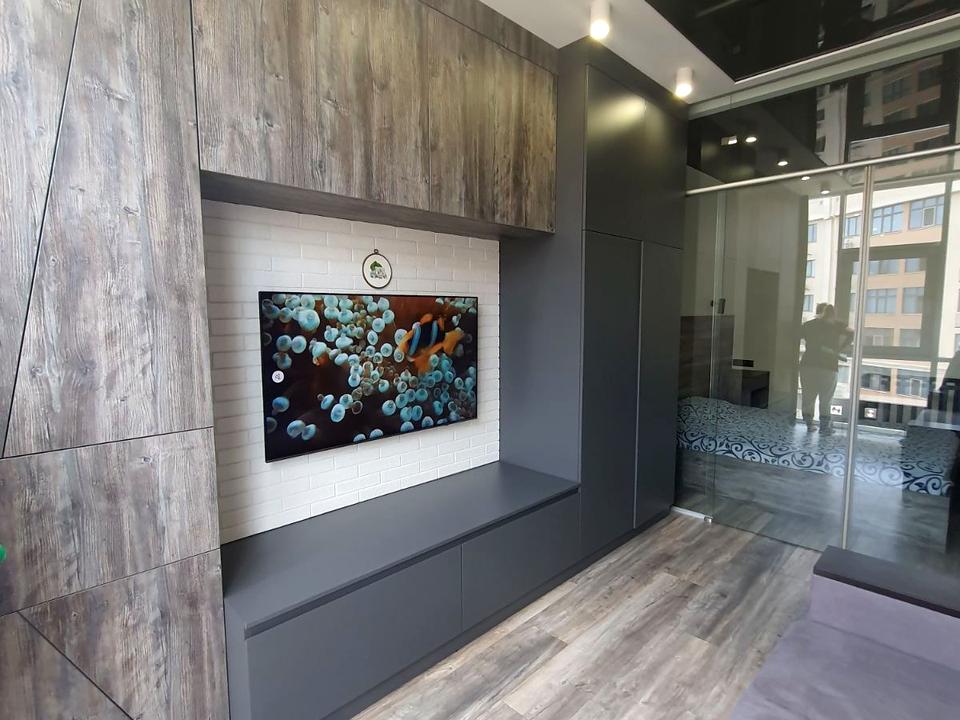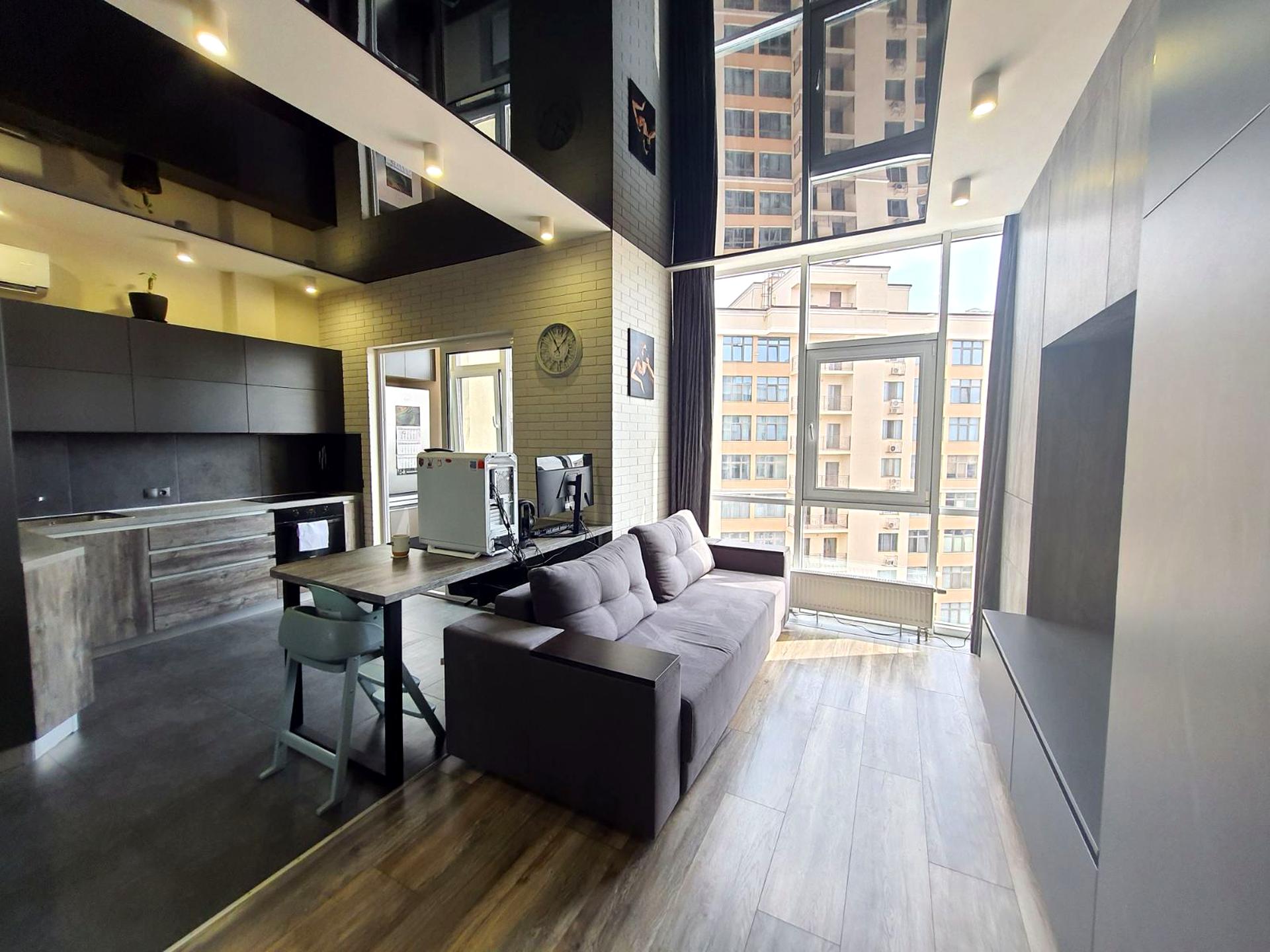 В квартирі 1 кімната, висота стелі 3 метра, Технологія будівництва - Монолітно-каркасна, Тип будинку - Спец. проект. Немає газу, кухонна плита електрична. Є балкон. У квартирі є Телевізор, Підігрів підлоги, Кондиціонер, Пральна машина, Ванна, Холодильник. Загальний стан квартири - З ремонтом. Безбар'єрність: дверні отвори в будинку шириною понад 0.9 м. Гаряча вода - електричний бойлер. Кількість санвузлів: 1. Інтернет оптоволоконний. Власник погоджується продати по програмі єОселя. Працює без світла - вода, опалення, інтернет, ліфт. Власник погоджується продати по програмі єВідновлення. Тип кухні - кухня-студія. Кількість спален: 1. Комісія за послуги 5 %