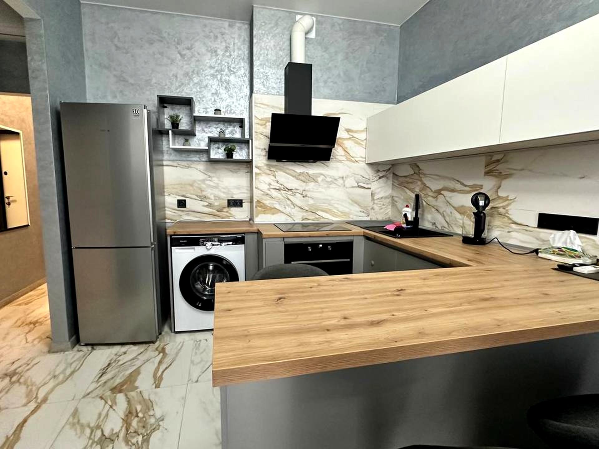 В квартирі 1 кімната, висота стелі 3 метра, Технологія будівництва - Монолітно-каркасна, Тип будинку - Спец. проект. Немає газу, кухонна плита електрична. Є балкон. У квартирі є Телевізор, Кондиціонер, Пральна машина, Душова кабіна, Холодильник. Будинок побудований в 2021 році. Загальний стан квартири - З ремонтом. Безбар'єрність: пандус. Гаряча вода - електричний бойлер. Кількість санвузлів: 1. Інтернет оптоволоконний. Працює без світла - вода, опалення, інтернет, ліфт. Тип кухні - кухня-студія. Кількість спален: 1. Комісія за послуги 5 %