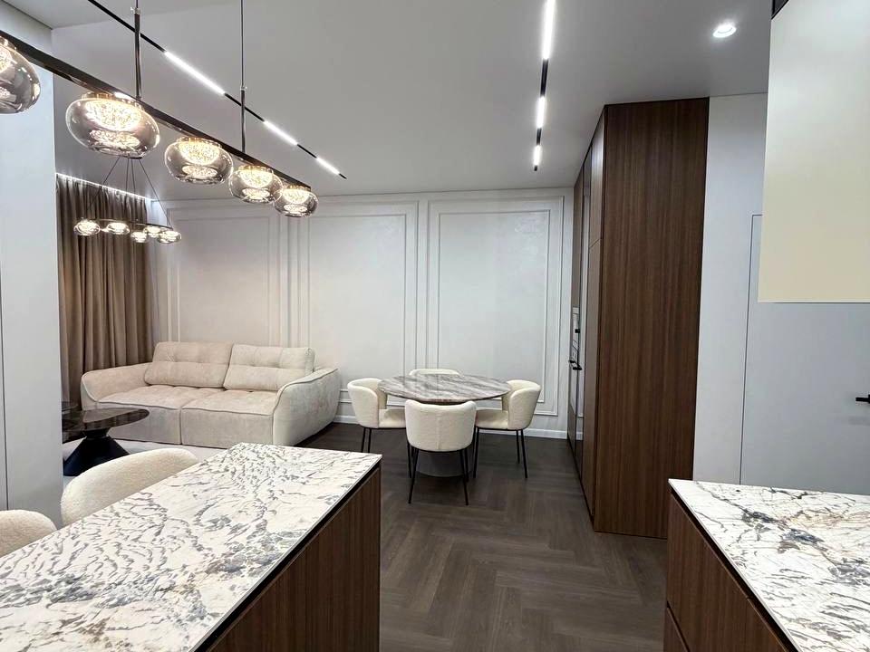 В квартирі 2 кімнати, висота стелі 2.90 метра, Тип будинку - Спец. проект. Немає газу, кухонна плита електрична. Є балкон. У квартирі є Телевізор, Підігрів підлоги, Кондиціонер, Пральна машина, Душова кабіна, Ванна, Холодильник, Мікрохвильовка, Посудомийна машина. Будинок побудований в 2022 році. Загальний стан квартири - З ремонтом. Гаряча вода - електричний бойлер. Кількість санвузлів: 2. Інтернет оптоволоконний. Працює без світла - вода, опалення, ліфт. Тип кухні - кухня-студія. Кількість спален: 2. Комісія за послуги 5 %