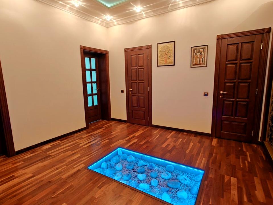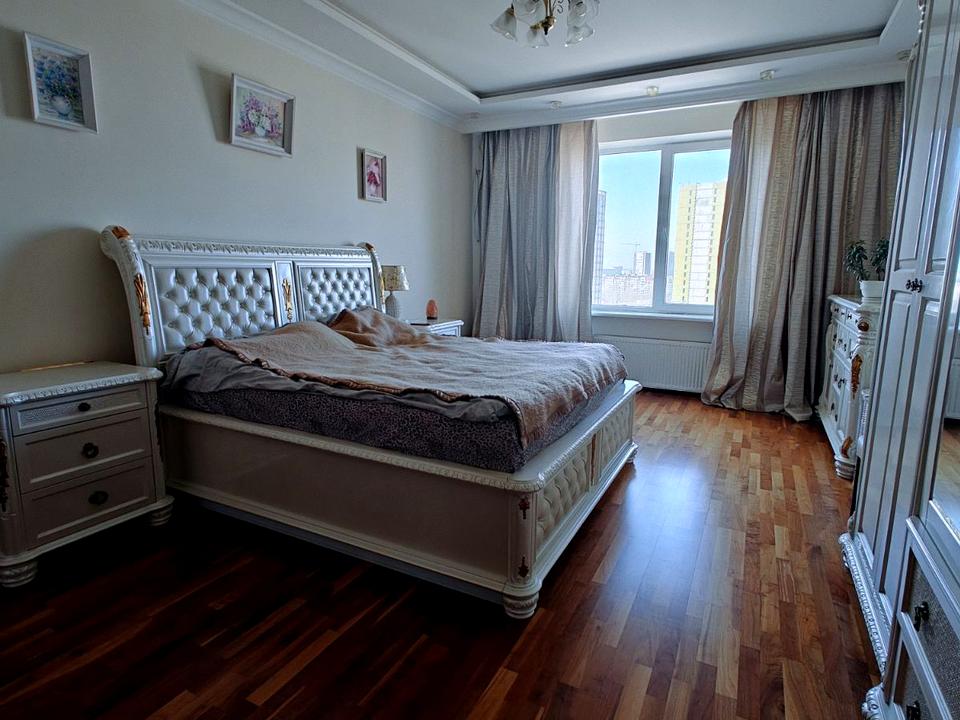 Класичний ремонт: підлога -паркет , столешниця- керамограніт , ванна керамограніт, підлога - італійська плитка ,люстри-бронза та кришталь .