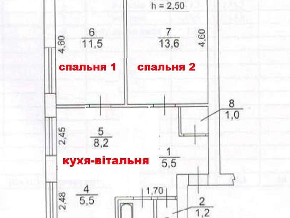 В квартирі 2 кімнати, висота стелі 2.5 метра, Технологія будівництва - Блочна, Тип будинку - Хрущівка. Є газ, кухонна плита газова. Немає балкона. Загальний стан квартири - Без ремонту. Гаряча вода - електричний бойлер. Кількість санвузлів: 2. Тип кухні - кухня-студія. Кількість спален: 2. Комісія за послуги 2000 $
