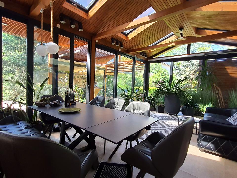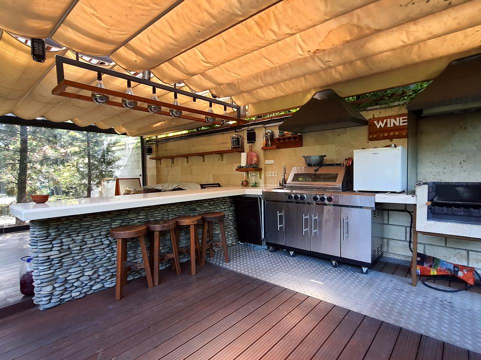 Участок 7 соток. Двухсторонний. Два въезда. 3 места для авто. Фитодизайн участка, зона барбекю с застекленной бесседкой и бассейном.