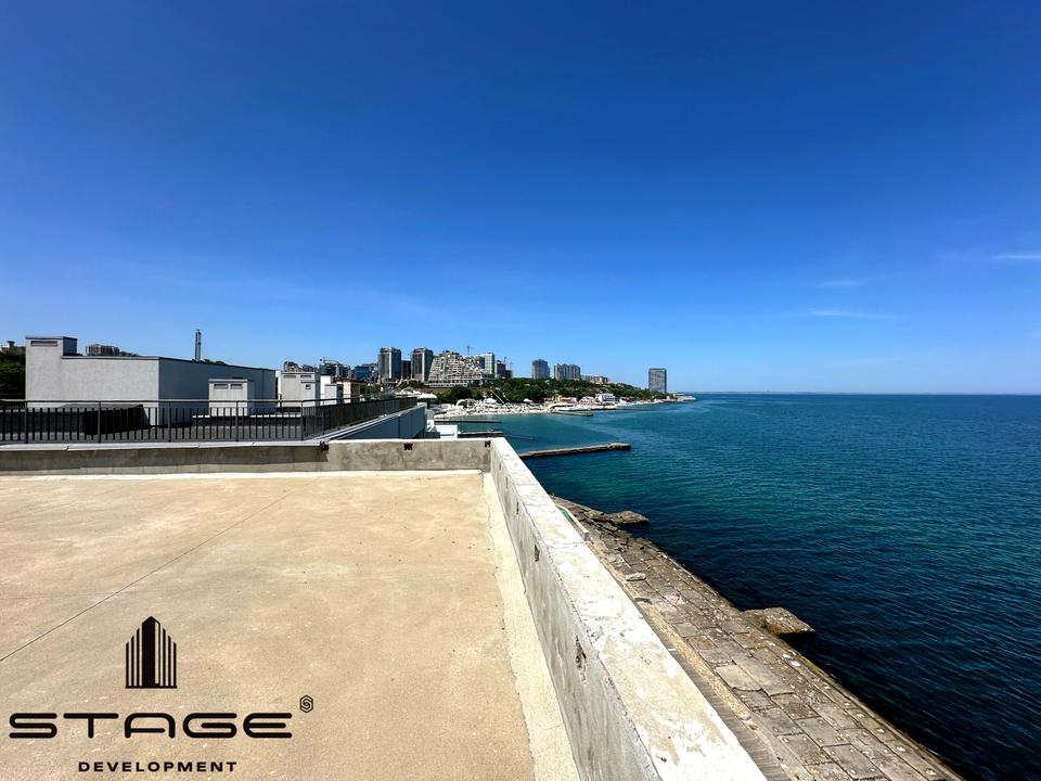 Общая площадь - 923 метра. Прямой вид моря. Построен из красного кирпича. Пять этажей, на каждом этаже есть террасы или балконы, установлена лифтовая шахта. Большая терраса на крыше - 163 метра. На первом этаже гараж на два авто, возле коттеджа есть дополнительные места для парковки машин. Есть проект на отделку и остекления дома, которое будет выполнено собственниками для покупателя. Возможно два варианта использования - для жизни или разделение на квартиры (есть варианты планировок).
