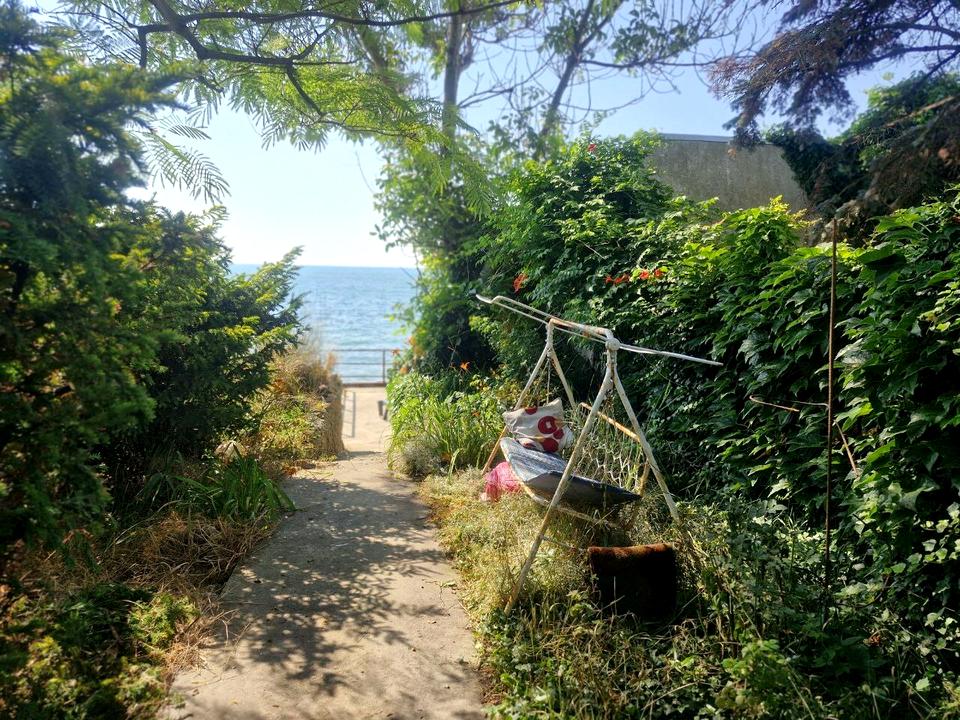 Асфальтированный подъезд, парковка внутри участка 2-4 машины, участок в первой линии от моря, 10 соток, дом 3 этажа, 2 спальных комнаты, 4 спальных места, 200 м2 общ.пл. балконы с видом на море, туалет, душевая, кухня, терраса с виноградной аркой и панорамным видом на море, садовая мебель, 2 диван-качели, мангал, лодочная, свой спуск к морю.