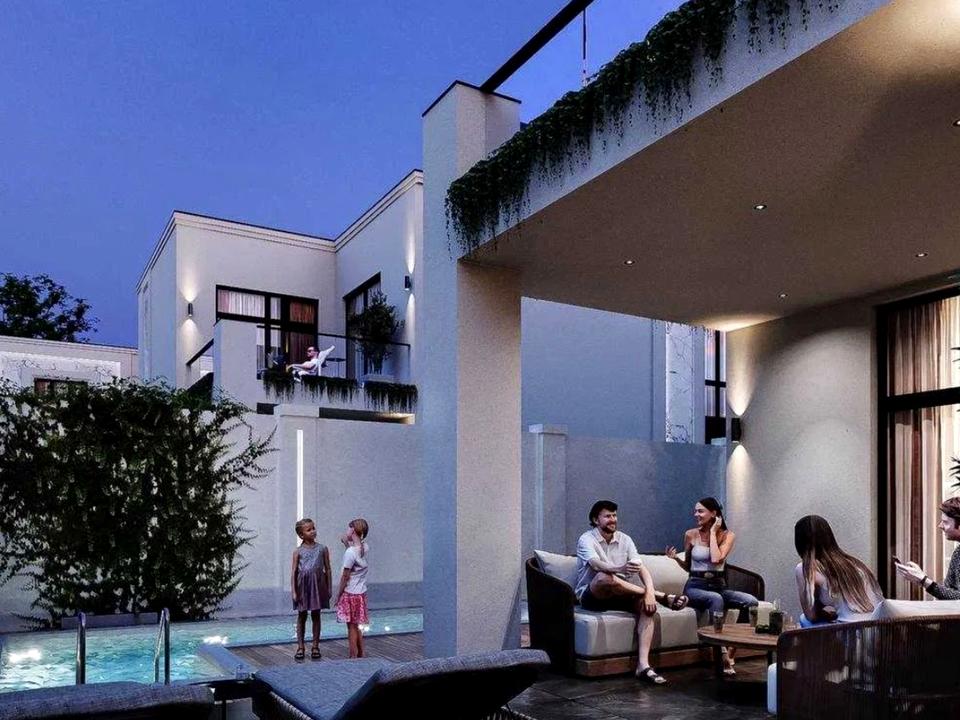 У продуманому плануванні передбачено все, що потрібно для зручності та затишку: кухня-вітальня з виходом на терасу, три спальні, одна з яких представлена як майстер-блок, окремий кабінет, три санвузли, технічні приміщення та простора гардеробна.