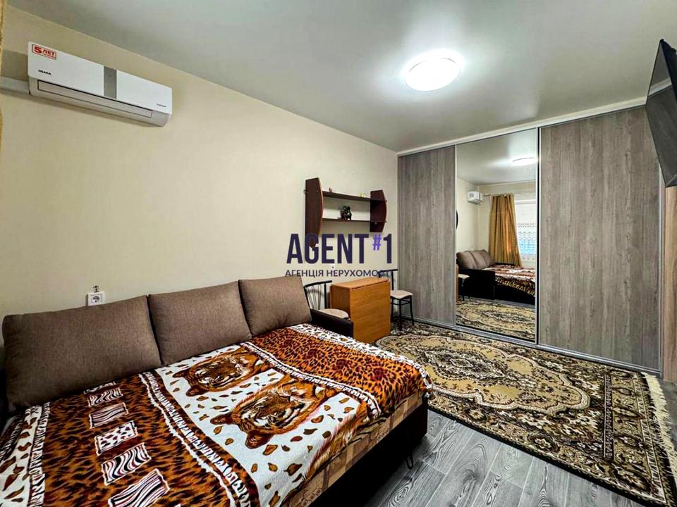 В квартирі 1 кімната. В квартирі є Телевізор, Шафа, Холодильник, Пральна машина, Кондиціонер, Лічильники. Загальний стан квартири - З ремонтом. Комісія за послуги 50 %