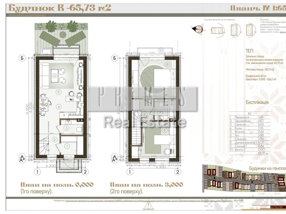 Площа: 66/39/20 м2, 2 поверхи, 2 кімнати, кухня-вітальня + паркомісце