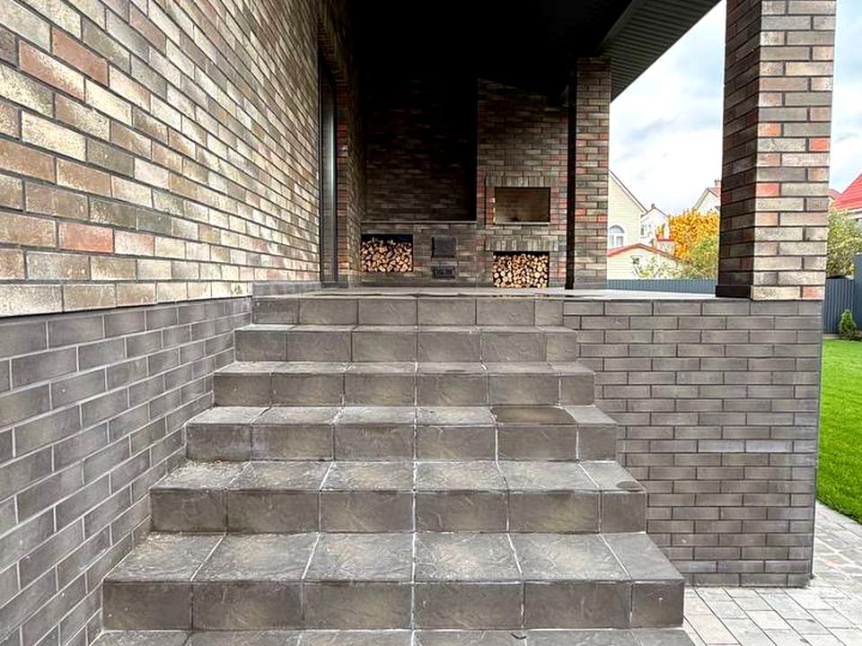 • Стрічковий утеплений фундамент, облицьований плиткою
