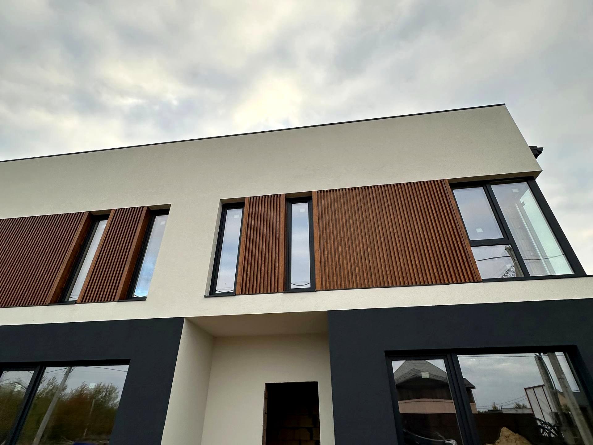 Дуплекс площею 130 м² на ділянці 2,4 сотки. На другому поверсі — 3 окремі кімнати, на першому — додаткова кімната та простора зона для життя.