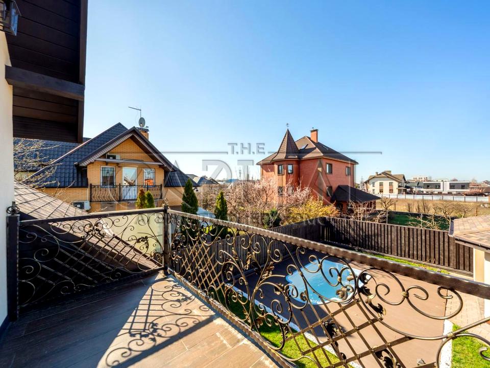 Ділянка — 9 соток, автополив, рулонний газон, фруктові дерева, басейн з підсвіткою та джакузі.