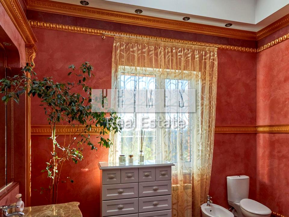 Будинок, 2 поверхи, 5 кімнат. Площа ділянки 15 соток. Планування кімнат Роздільне. У будинку є Підігрів підлоги, Камін, Ванна, Сигналізація, Зона мангалу, Гараж, Тераса, Бесідка, Лазня, Басейн. Загальний стан будинку - З ремонтом. Комісія за послуги 3 %