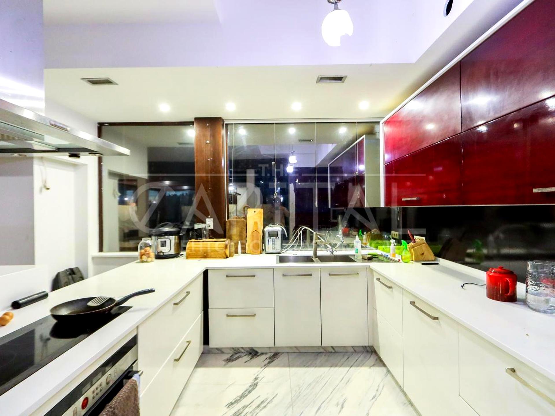 В ремонті використано натуральний камінь, такий як кварц, оникс та граніт, надаючи інтер'єру неповторний шарм та елегантність.
