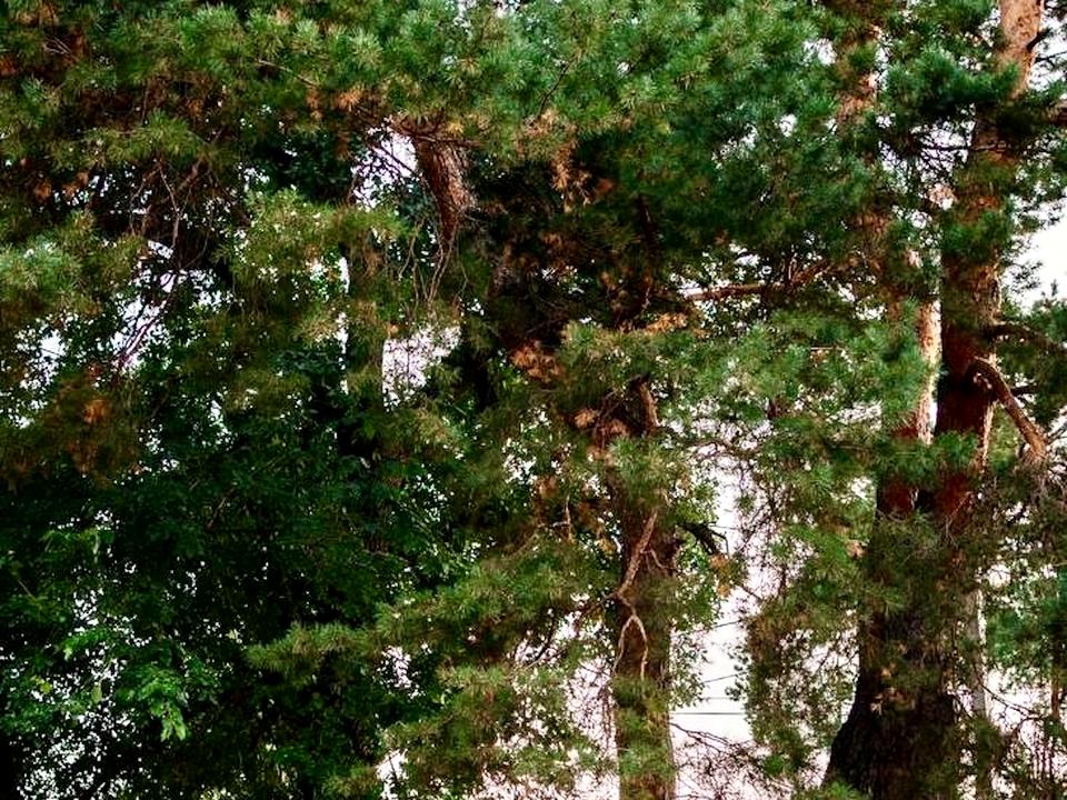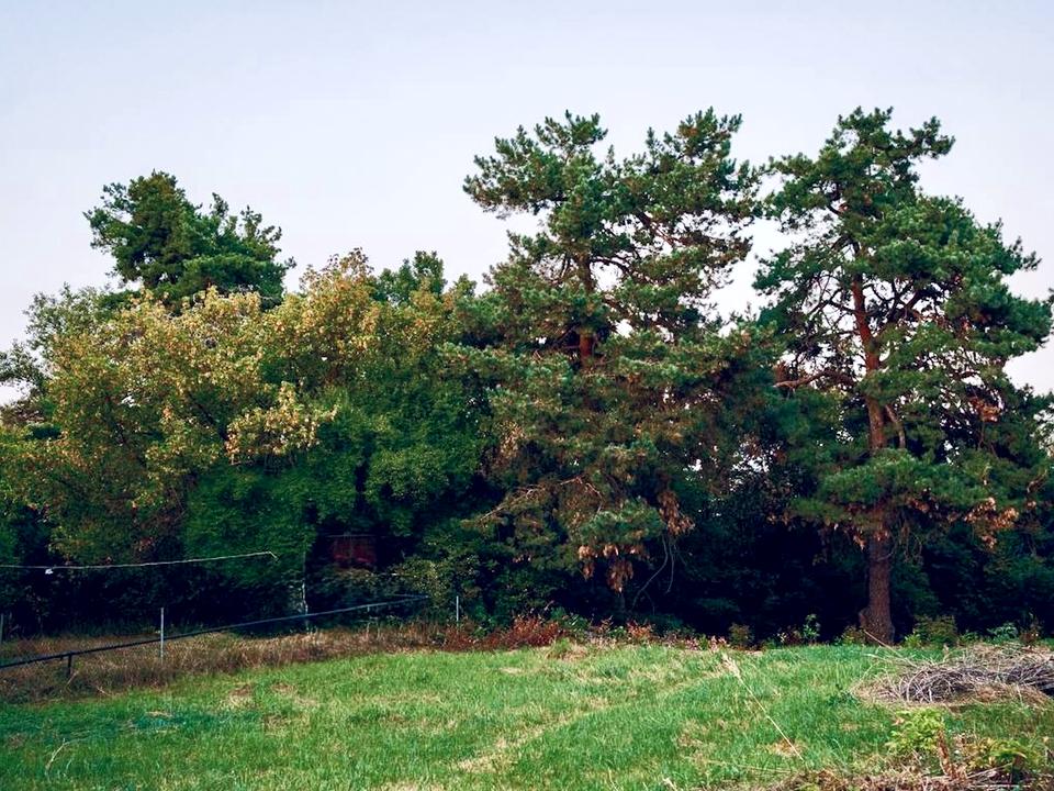 • Рівна територія з хвойними деревами