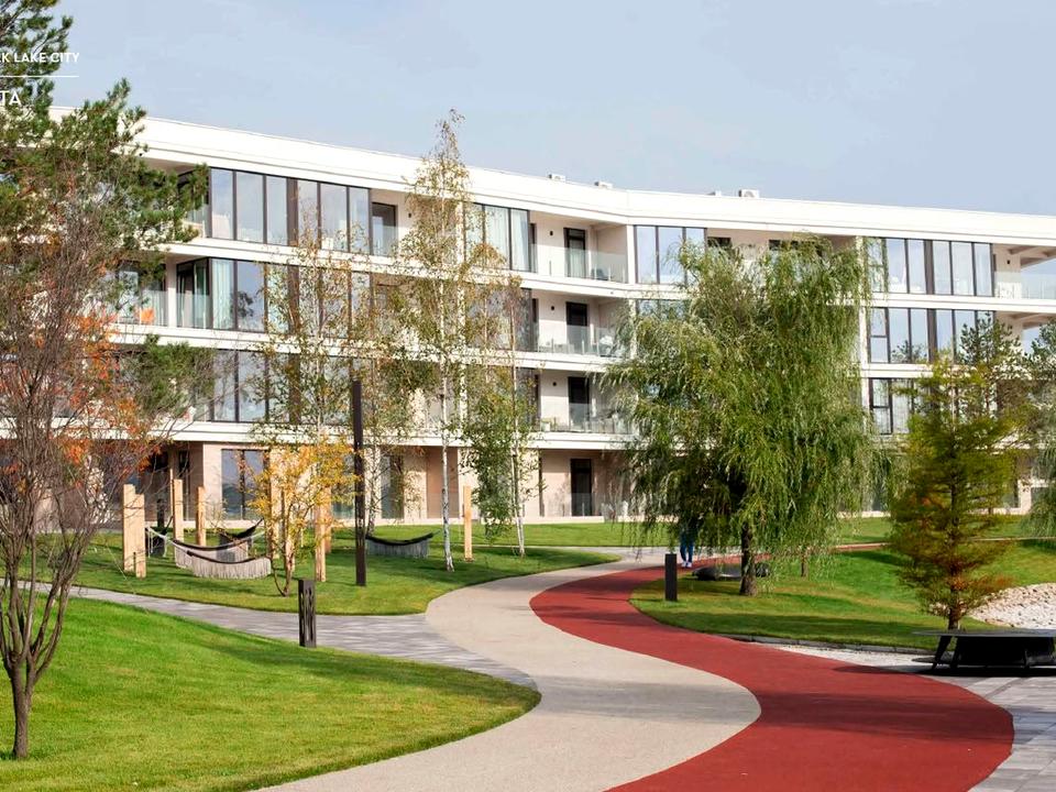 Унікальний ландшафт: власне озеро, облаштований пляж та паркова зона лише для мешканців. Відчуйте себе на курорті, не виїжджаючи з дому.