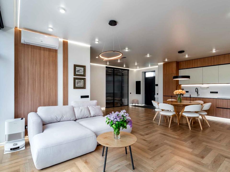 Ціна вказана із зовнішнім оздобленням, дизайнерським ремонтом, корпусними меблями, озелененням та повним пакетом документів, час реалізації проєкту 5-6 місяців