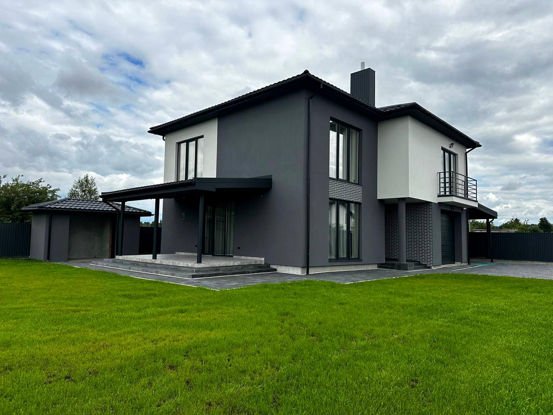 🔺В дворі засіяний газон та вимощена бруківка, є гараж та автонавіс на 2 авто, також облаштована зона барбекю поруч з терасою.