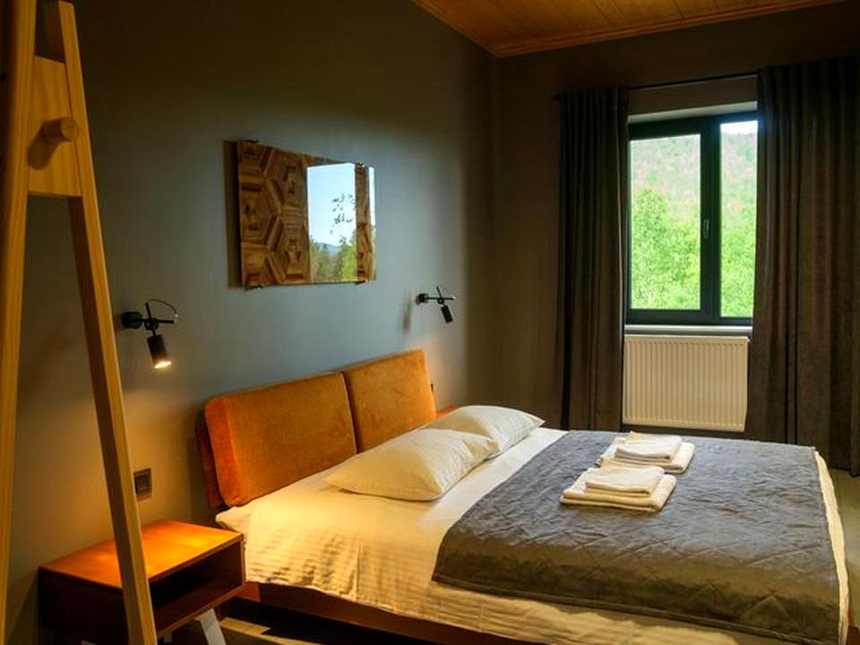 Усі номери обладнані за дизайнерським проєктом: сучасні меблі, побутова техніка, кондиціонери, власні санвузли.