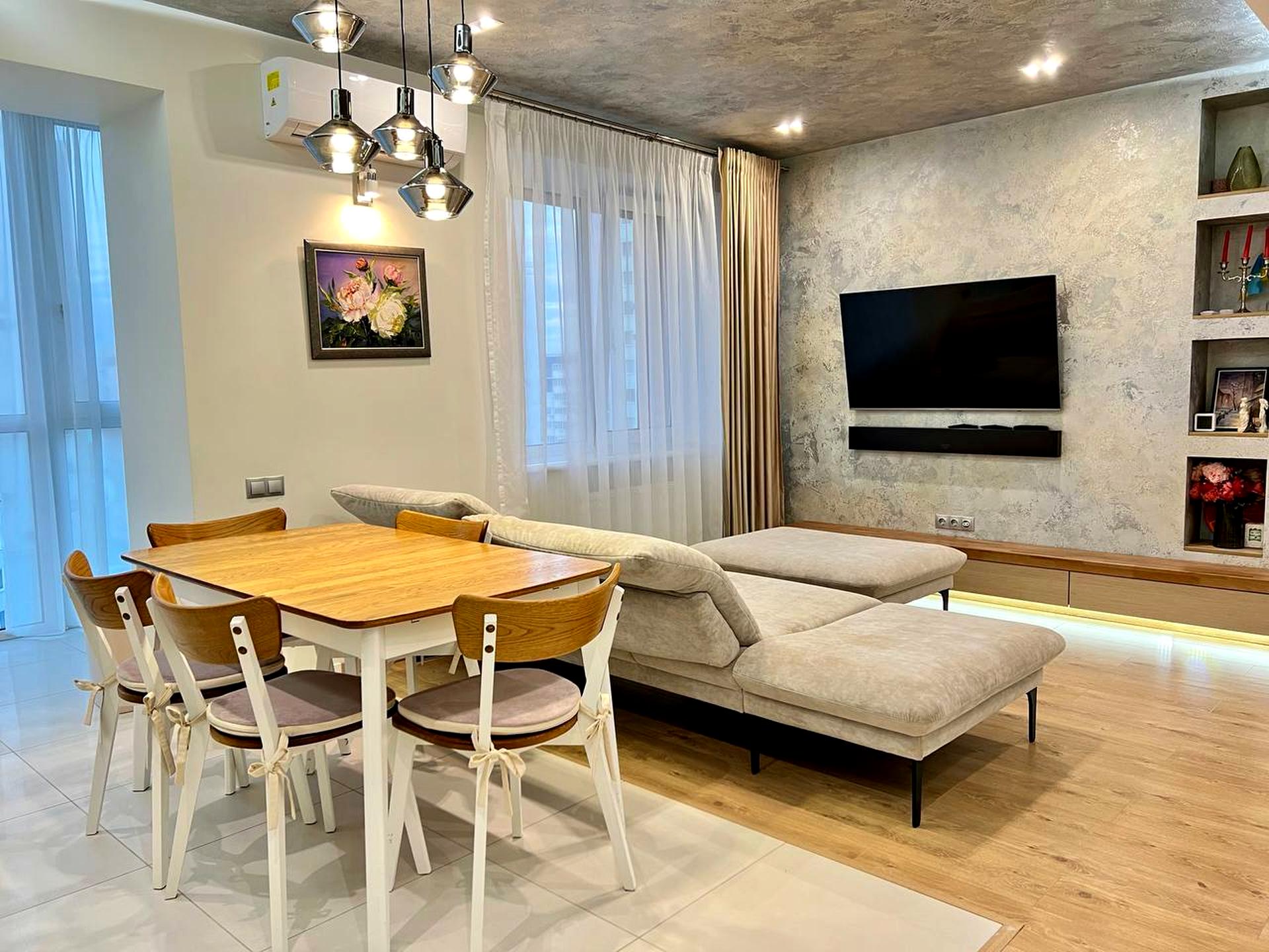 Квартира простора, комфортна, із великим кухнею-вітальнею та трьома окремими спальнями.