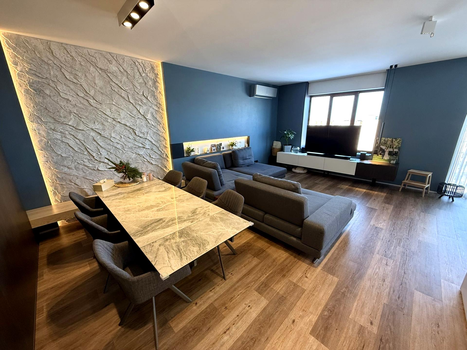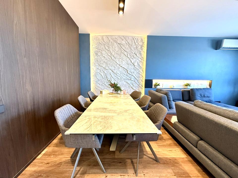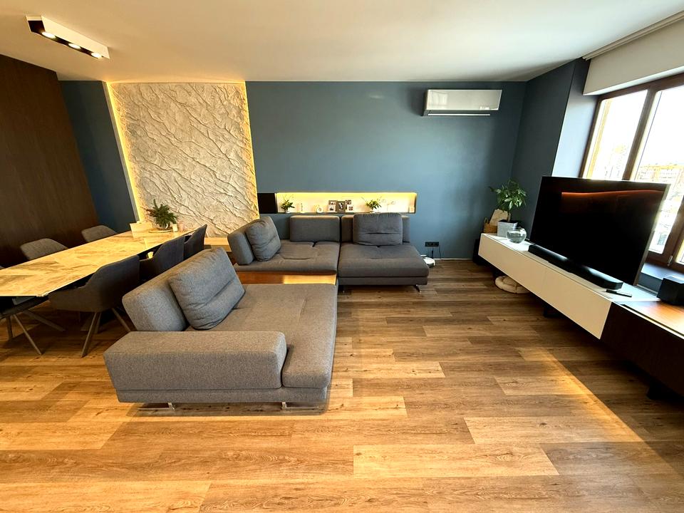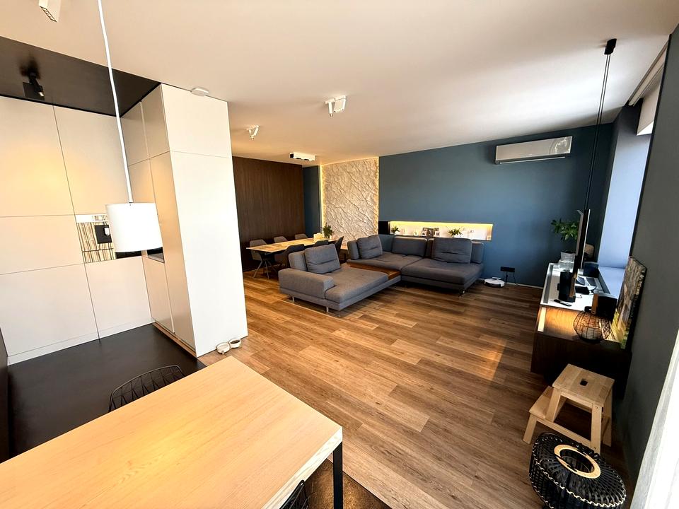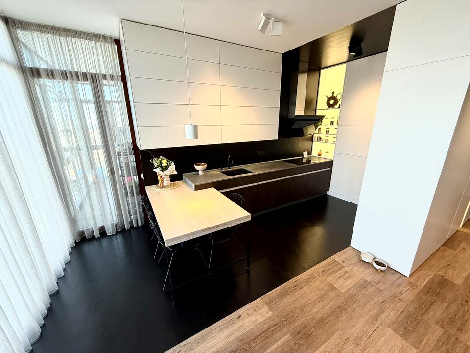 Загальна площа - 127 м², кухня-студія площею 47 м², дві великі спальні, два санвузли.