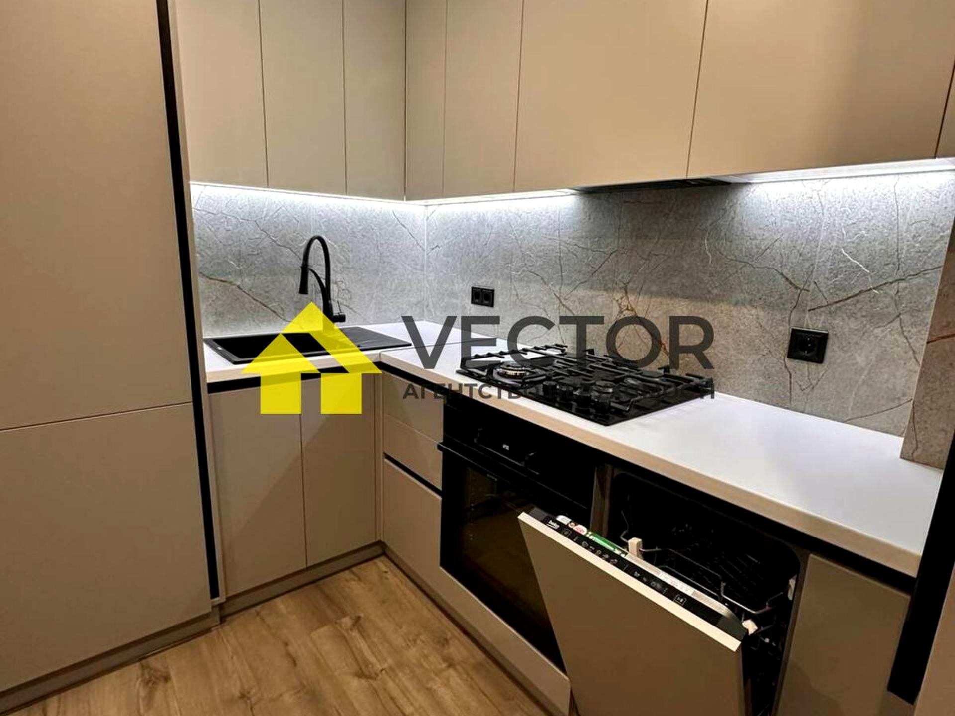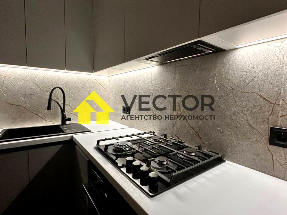 Квартира з якісним дизайнерським ремонтом, виконаним із використанням дорогих матеріалів. Інтерєр оформлений у сучасному стилі з декоративною штукатуркою та продуманими деталями такими як підсвітка кухонної зони, дзеркала з підсвіткою, підвіконня з керамограніту, підлога з водостійкого кварцвінілу і тд.