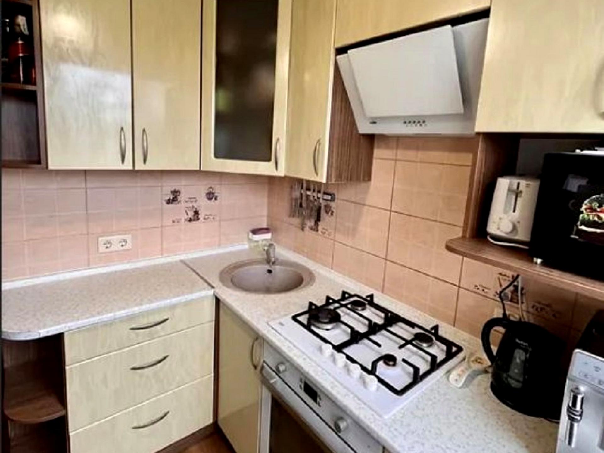 В квартирі 3 кімнати, висота стелі 2.8 метра, Технологія будівництва - Панельна, Тип будинку - Хрущівка. Є газ, кухонна плита газова. Є балкон. У квартирі є Кабельне ТБ. Будинок побудований в 1970 році. Загальний стан квартири - З ремонтом. Безбар'єрність: дверні отвори в будинку шириною понад 0.9 м. Гаряча вода - централізована. Кількість санвузлів: 1. Інтернет оптоволоконний. Працює без світла - вода, газ, опалення. Тип кухні - окрема кухня. Кількість спален: 3. Є підземний паркінг, доступний як укриття. Інфраструктура території: спортивний майданчик, дитячий майданчик. Комісія за послуги 4 %